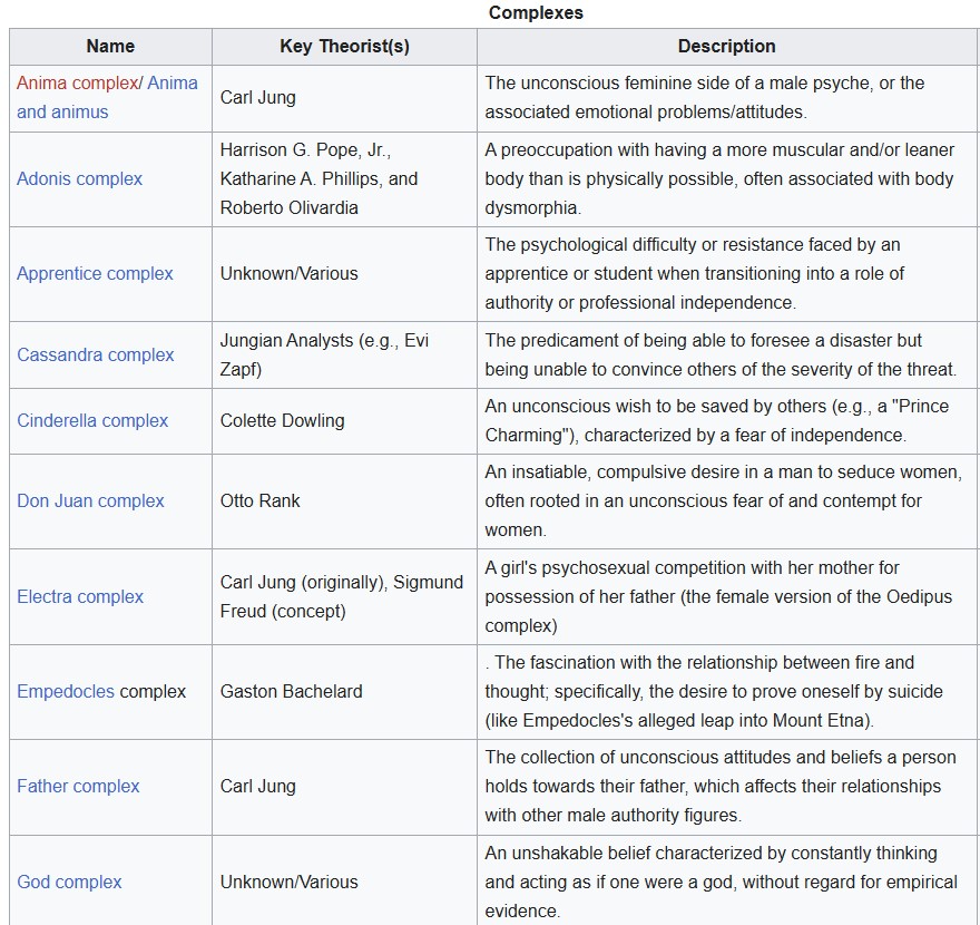 Selected psychological “complexes” listed on Wikipedia.